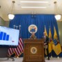 New Jersey Governor Mikie Sherrill and New Jersey State Treasurer Aaron Binder hold press conference to discuss New Jersey financial landscape prior to the upcoming budget address, while in the media room at the statehouse in Trenton, N.J. on Thursday, Feb. 26, 2026. (Office of Governor / Tim Larsen)