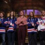 SATURDAY NIGHT LIVE — Episode 1897 — Pictured: (l-r) Quinn Hughes, Megan Keller, host Connor Storrie, Hilary Knight, and Jack Hughes during the Monologue on Saturday, February 28, 2026 — (Photo by: Will Heath/NBC)