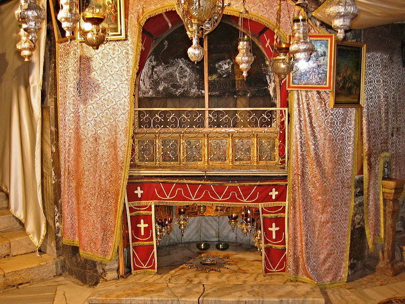 The closest I got to Jesus was crawling into one of the traditional birth grotto sites in Bethlehem. What I entered was the Grotto of the Nativity beneath the Church of the Nativity in Bethlehem. The physical act of me crawling or bowing low is not accidental there. It is built into the architecture.
